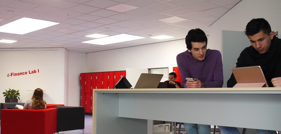 Dieser Studiengang wird als praxisintegrierendes duales Studium angeboten. In diesem Studienmodell absolvieren Studierende im dreimonatigen Wechsel zum Studium Praxisphasen in einem Partnerunternehmen aus der Bank- und Finanzbranche. Neben klassischen Vorlesungen in kleinen Gruppen stehen projektorientierte Lehrformate, Seminare, Web Based Trainings und Gruppenarbeiten im Vordergrund. Modern ausgestattete Finance Labs und offene Lerninseln bieten optimale Voraussetzungen für diese „kollaborativen“ Lehrformate.