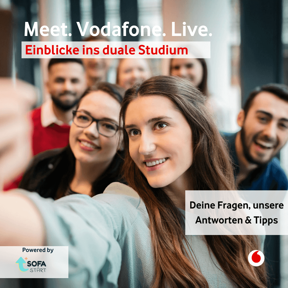 Du willst praktische Erfahrungen mit Deinem Studium verbinden und uns näher kennenlernen? Dann melde Dich jetzt für unsere Livesessions an, tausche Dich mit unseren dualen Student:innen aus und stell Deine Fragen rund um das Thema Duales Studium und Deiner Bewerbung bei Vodafone – ganz easy, ganz entspannt.